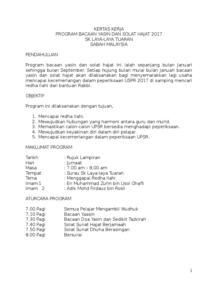 Kertas Kerja Solat Hajat Bacaan Yasin Pdf