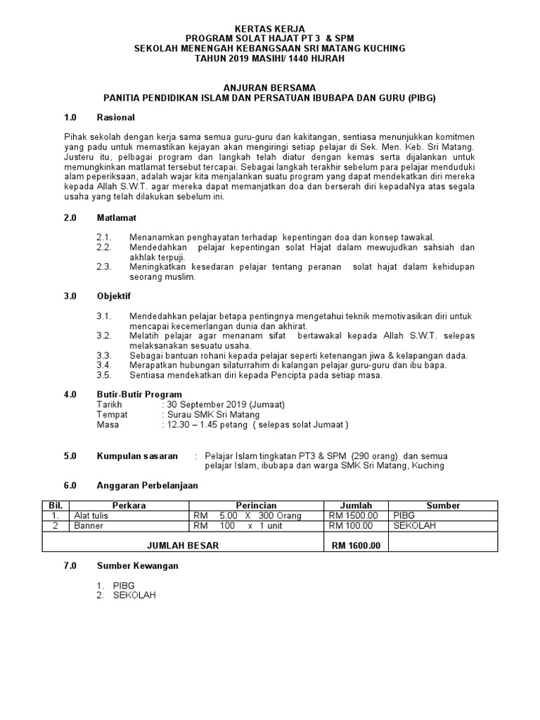PENGENALAN Program ini dilaksanakan untuk membantu murid-murid sekolah ini meningkatkan prestasi masing-masing. Membeli air mineral untuk solat hajat rm 30000 rm 30000. Tarikh dan tempoh.